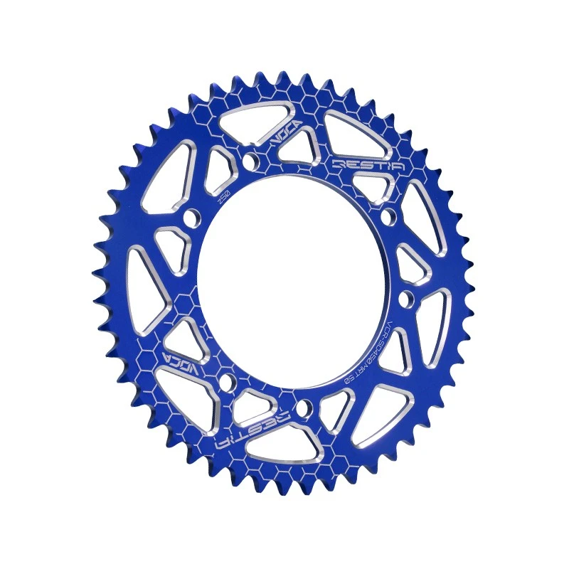 Het VOCA CNC 50 tands achtertandwiel is ideaal voor wie een hogere overbrenging of meer trekkracht wil. Dankzij de CNC bewerking uit AA‑7075‑T6 aluminium is het tandwiel extreem sterk én licht van gewicht. Perfect voor sportieve Derbi modellen met gietwielen.