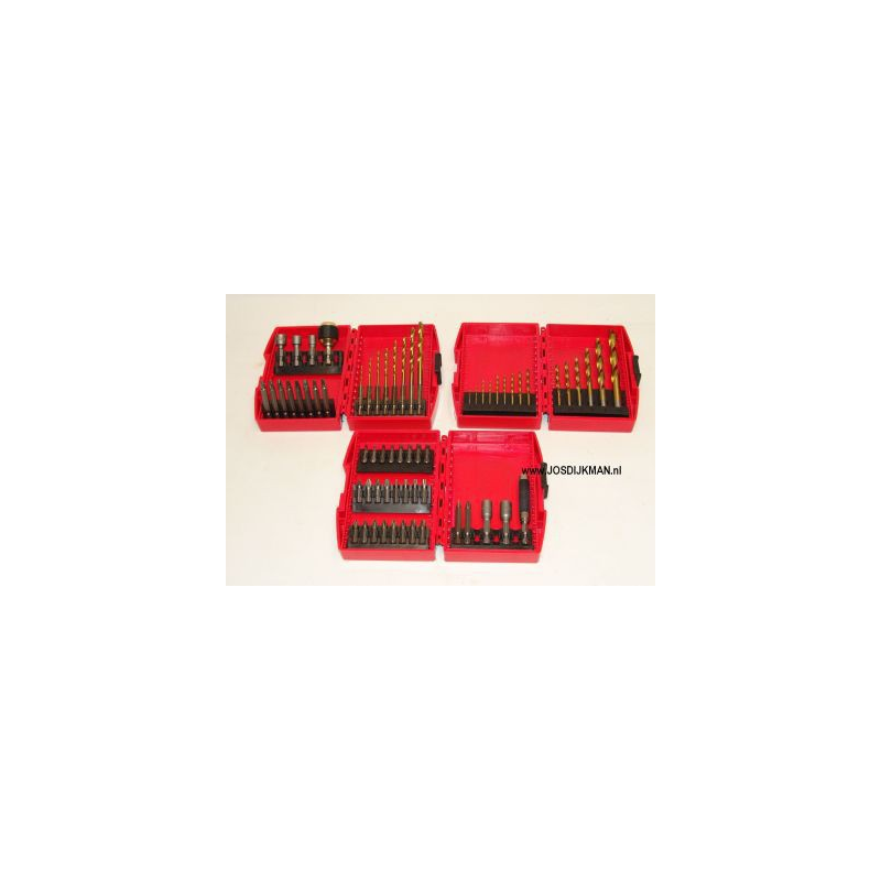 3 Filled boxes with different types of bits, and HSS drills in various common sizes.