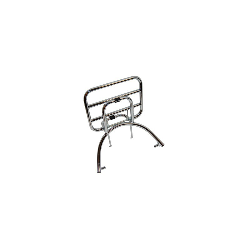 Folding chrome rear rack by Supertec, suitable for SYM Mio. High-quality fit and finish. Delivered without backrest pad.
