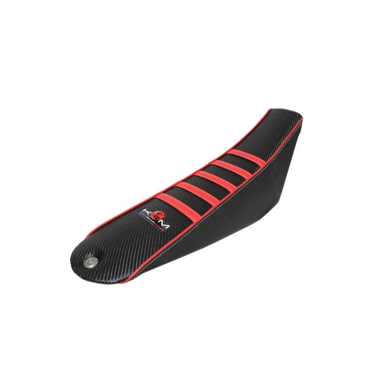 The KRM Pro Ride seat cover for Beta RR 50 2011 - 2020 is a handmade, high-quality saddle cover with a sporty appearance. This seat cover features black sides, a black top with a carbon effect, the KRM logo, and 5 colored vertical stripes. Thanks to the hand-stitched strips, this cover provides added reinforcement and an effective anti-slip seat surface, ideal for sporty riders and racers.