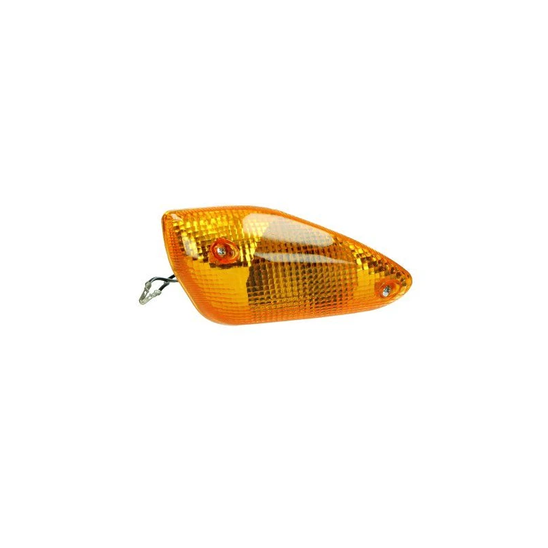 This front left turn signal fits the Yamaha Aerox from model years 1997 to 2013. It’s a complete OEM-style unit featuring a durable orange lens.