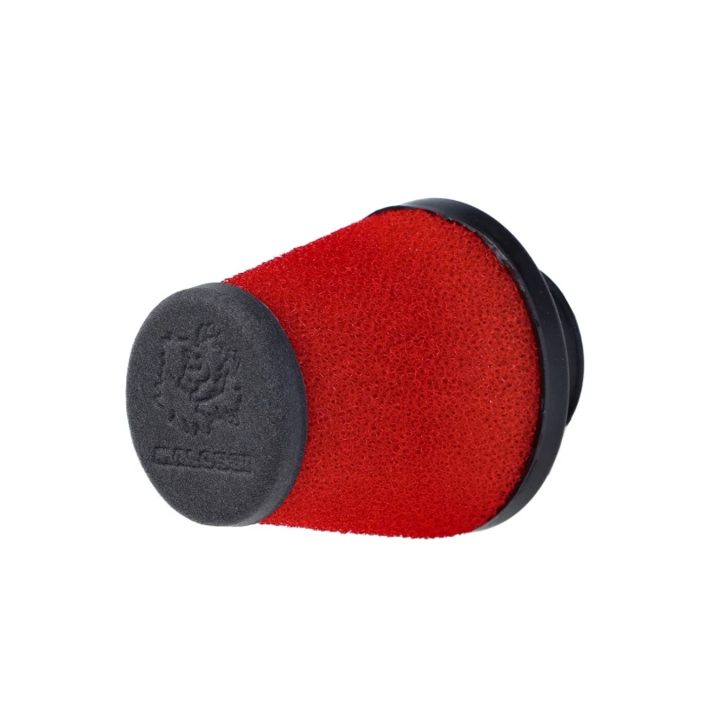 The Malossi Red Filter E17 is a compact conical air filter with a 32mm straight connection, also suitable for 38mm applications. It is designed for PHVA, PHBN, and PHBG carburetors, both threaded and non-threaded.