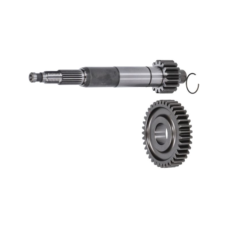 Long primary gearing from Malossi with transmission ratio 16/37, specifically developed for Piaggio 50cc 2-stroke scooters from around 1999. This gearing is suitable for engines where the input shaft is supported in both the transmission cover and the crankcase cover. The gearing has a 17.77 mm press fit for the secondary gearing.