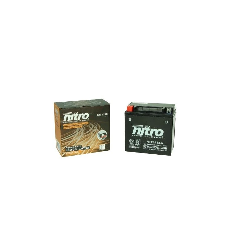The Nitro NTX14-BS (also known as YTX14-BS) GEL battery is a high-quality, maintenance-free motorcycle battery. Its sealed gel system requires no acid filling and allows for flexible mounting positions. Designed for durability, it is leak-proof, shock-resistant, and delivers dependable power for demanding conditions.