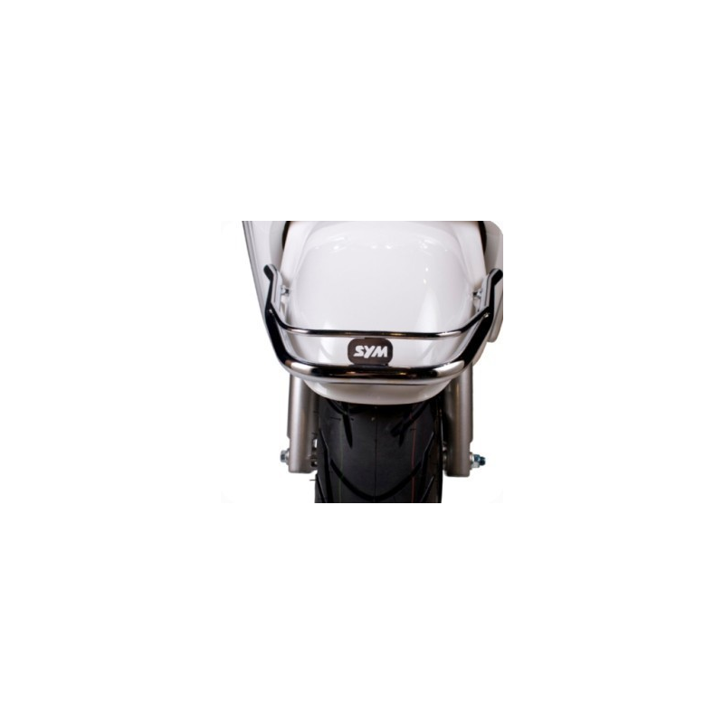 This original chrome front fender bar with SYM logo is designed for SYM Fiddle II 50cc and 125cc models. It protects the fender from damage while adding a distinctive and upscale appearance. Made with high-quality chrome and a perfect fit for your scooter.
