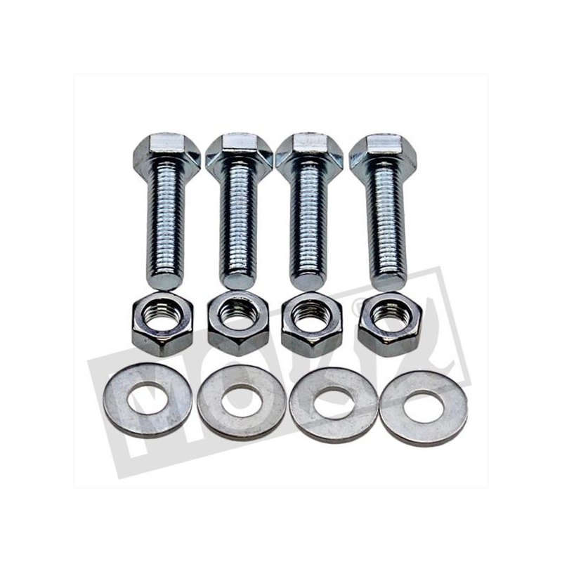 This 12-piece bolt set is designed for securely mounting the rear sprocket on Tomos A3 and A35 mopeds. It includes high-quality, zinc-plated bolts, nuts, and washers that offer excellent corrosion resistance and durability.