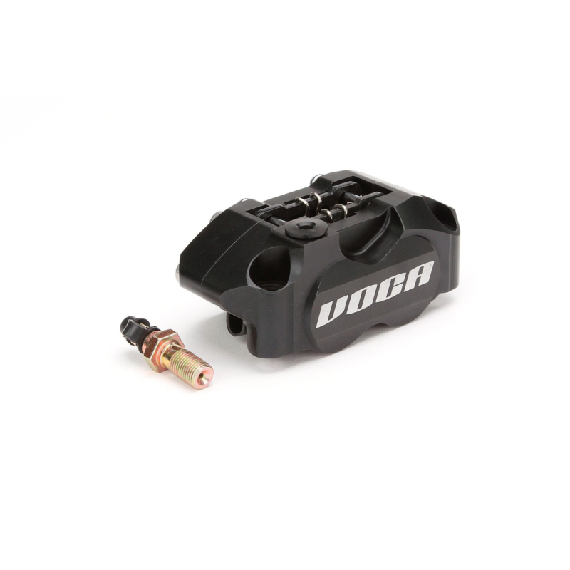 New radial brake caliper VOCA G-Force (4-pistons). Increases the braking power of your scooter or moped. Recommended for the racetrack and street use. A high-quality, very resistant and light brake caliper that is CNC milled from solid alloy pieces. Available in anodized black or anodized red color, VOCA logo laser engraved on the surface. Distance between holes 82 mm, M8 screws. Equipped with organic brake pads.