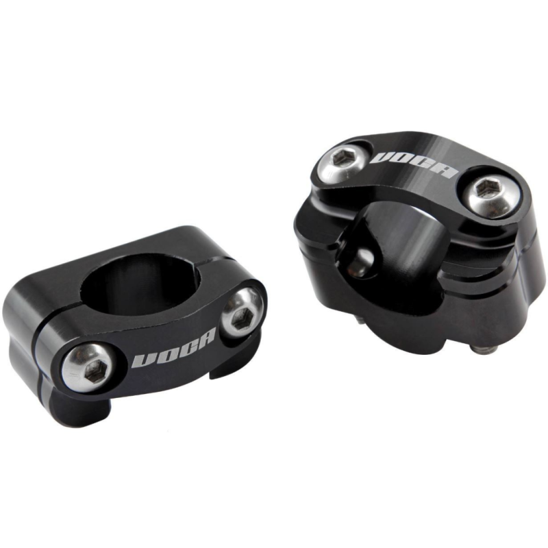 Now available! The new handlebar clamps from VOCA Racing from 22mm to 28mm to easily mount a 28MM handlebar. Ultra light design, aggressive look and high-quality aluminium - that's the best description of the new VOCA handlebar clamps. The complete set consists of two handlebar clamps that are equipped with M8 screws. Polished silver and anodized black versions available. Laser engraved VOCA logo on the surface. The complete kits include all screws.