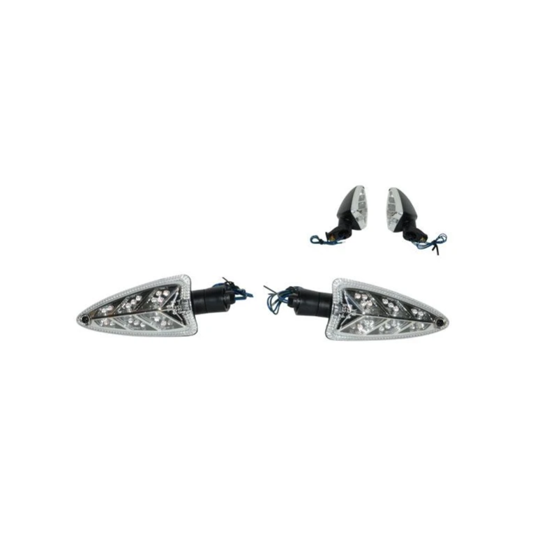 De knipperlichten hebben een lengte van 10 cm en zijn voorzien van krachtige LED-verlichting voor maximale zichtbaarheid en een moderne uitstraling. Dankzij het compacte formaat en universele bevestiging zijn ze eenvoudig te monteren op verschillende voertuigen.