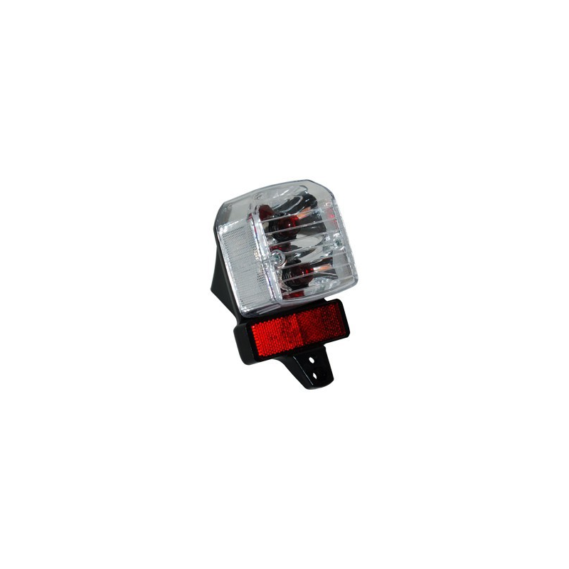 Lexus stijl achterlicht met helder glas voor Tomos A3 / A35. Inclusief 2 rode BA15 12V lampjes. Ook universeel toepasbaar.