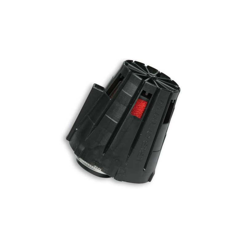 De Malossi E5 Red Filter is een hoogwaardige, rechte luchtfilter met een 38mm aansluiting en een zwarte afschermkap. Dit model is speciaal ontworpen voor Dell’Orto PHBL 20–25mm carburateurs en biedt uitstekende luchttoevoer en filtratie dankzij het hoogwaardige schuimfilterelement.
